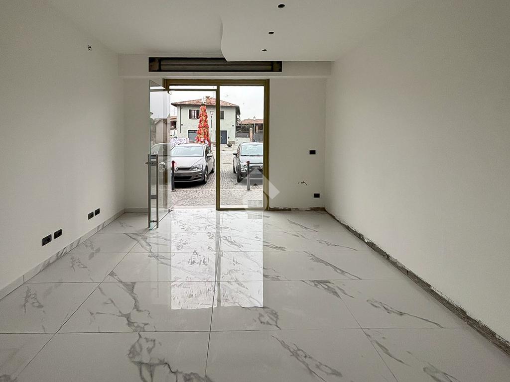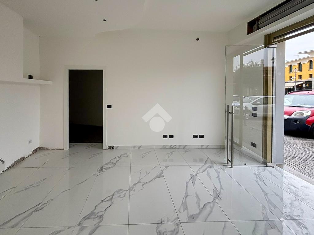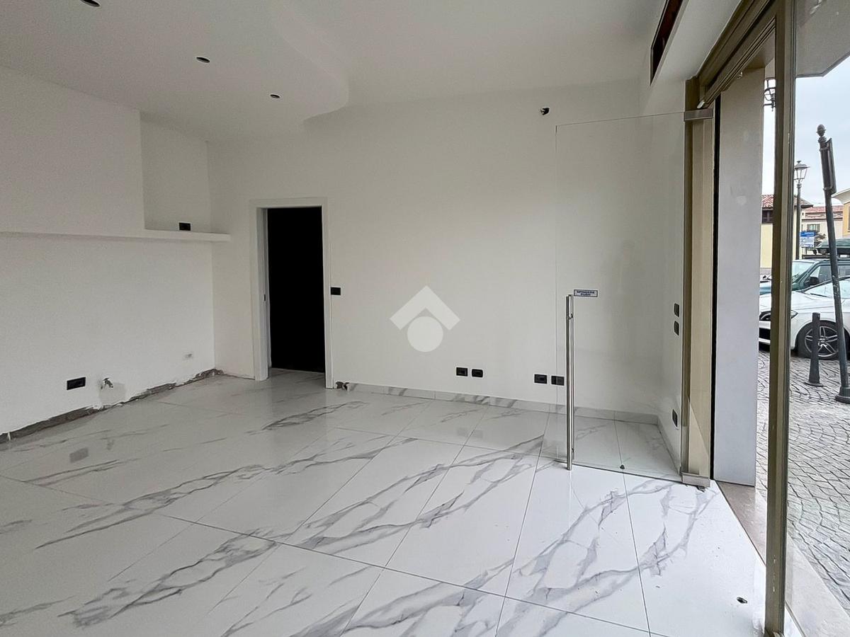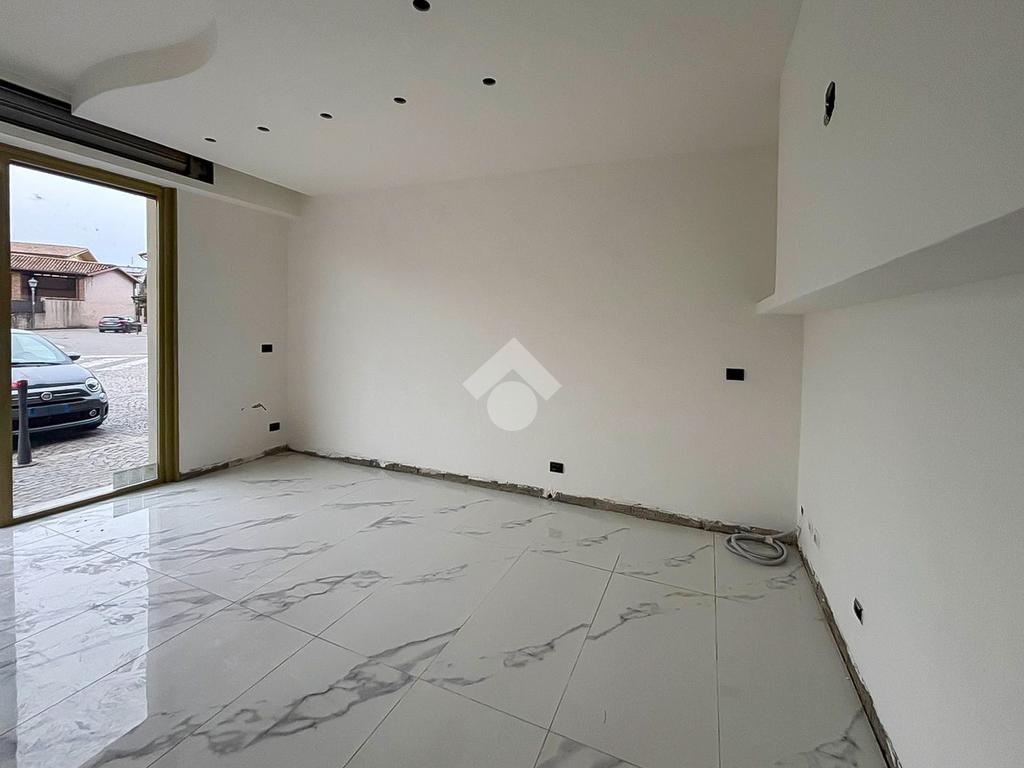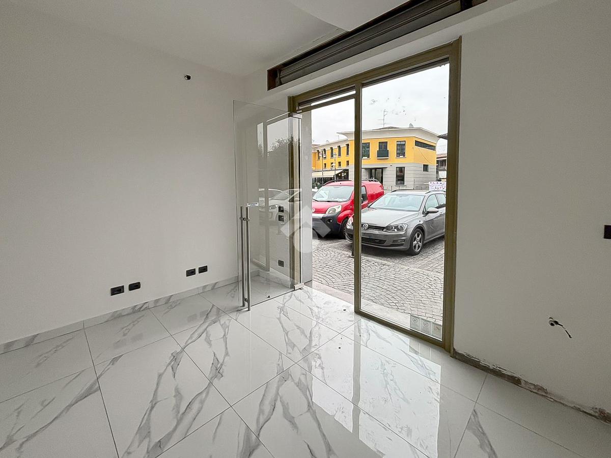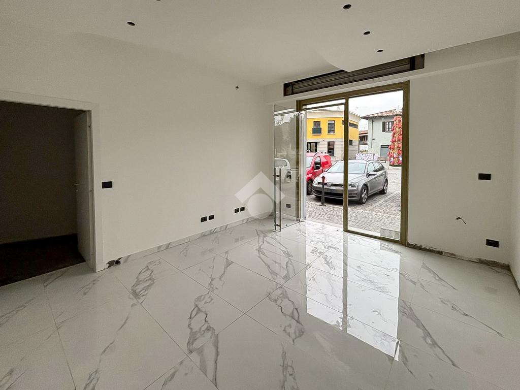 La soluzione proposta in vendita dispone di una superficie calpestabile di circa 50 metri quadrati posizionati al piano terra e ulteriori 10 metri quadrati destinati a deposito e disposti al piano interrato. Internamente l'immobile si presenta con un ampio open space, reso particolarmente luminoso grazie alla presenza di una vetrina fronte strada. L'immobile è completo degli impianti elettrico, di riscaldamento e di condizionamento. A completare la soluzione è la presenza di un servizio igienico privato.
