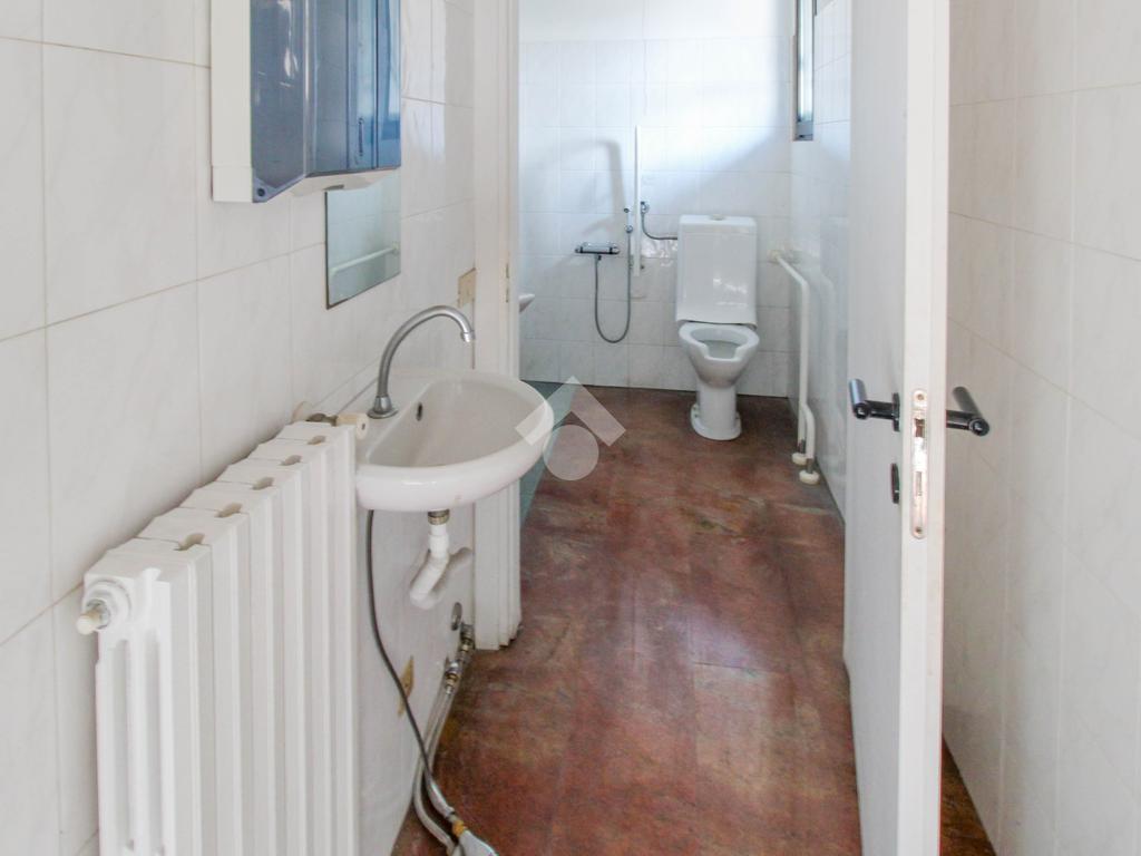 La soluzione ha una superficie di circa 80 metri quadrati, disposti al piano terra. L’ufficio, internamente, si presenta diviso in stanze rese particolarmente luminose grazie alla presenza di cinque vetrine. L'immobile è completo degli impianti elettrico, di illuminazione, di riscaldamento e di condizionamento. A completare la soluzione è la presenza di due servizi igienici privati, di cui uno a norma disabili.