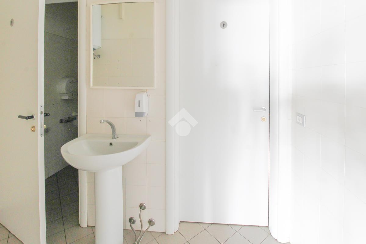 La soluzione ha una superficie di circa 170 metri quadrati, disposti al piano terra. L'ufficio, internamente, presenta un ampio openspace e due stanze rese particolarmente luminose grazie alla presenza di due vetrine. L'immobile è completo degli impianti elettrico, di illuminazione, di riscaldamento e di condizionamento. A completare la soluzione è la presenza di tre servizi igienici privati, di cui uno a norma disabili.