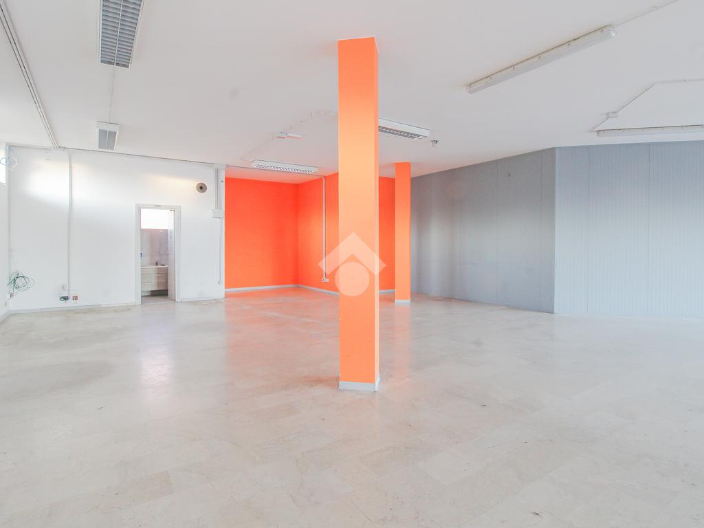 La soluzione ha una superficie di circa 220 metri quadrati, disposti al piano terra. L'ufficio, internamente, si presenta con un ampio open space reso particolarmente luminoso grazie alla presenza di tre grandi vetrine. L'immobile è dotato di canna fumaria, degli impianti elettrico e di illuminazione. A completare la soluzione è la presenza di un servizio igienico privato.
